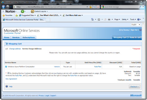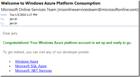 Instead of the invitation only mode in Public Preview, you can now activate your Windows Azure subscription from the Microsoft Online Services Consumer Portal. At the end, Azure is software as a service, you subscribe to it monthly just as you subscribe to telephone services.