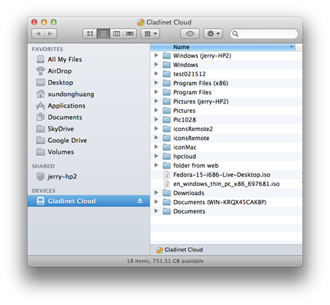 After that, you just need to run the “Gladinet Cloud Mac Client” and log in to the same account that is connected to the HP Cloud Storage account.