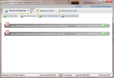 Here you will see “Two Way Sync”, “Mirrored Backups”, “Cloud to Cloud Backups” and “Snapshot Backups”